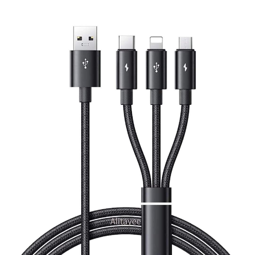 Alitayee VAR-NI 3 In 1 Multi Charging Cable With USB To Micro, USB Type C, Light-Ning Pin, Compatible With Oppo, Vivo, Xiaomi, Samsung, iPhone, Ipad Pro & Car Charging, By Marchpower.,1M