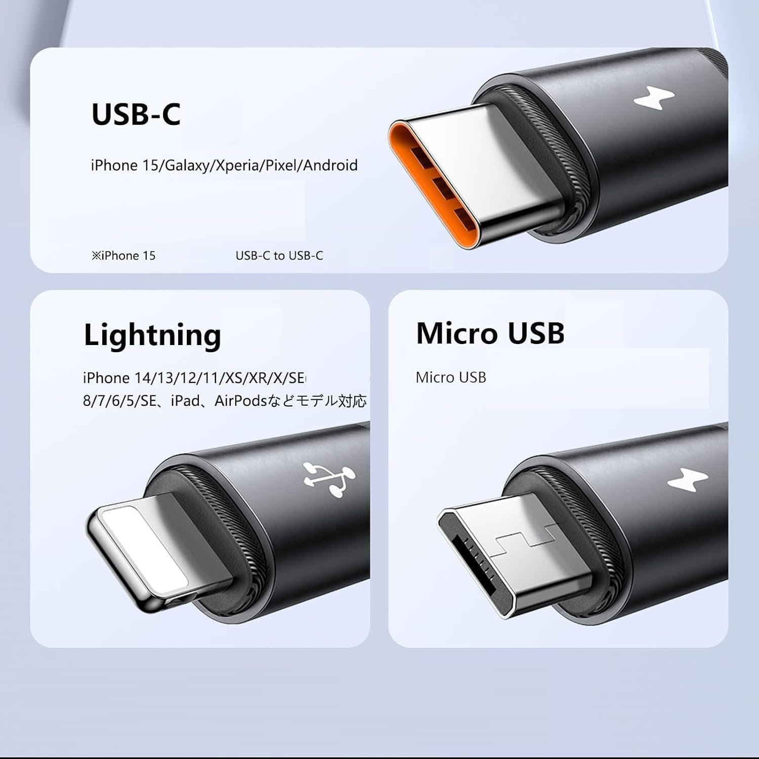 • Note :This 3-in-1 fast charging cable is recommended to use a USB power adapter with a minimum output of 3A to achieve fast charging (Does not support Apple CarPlay & file transfer.)