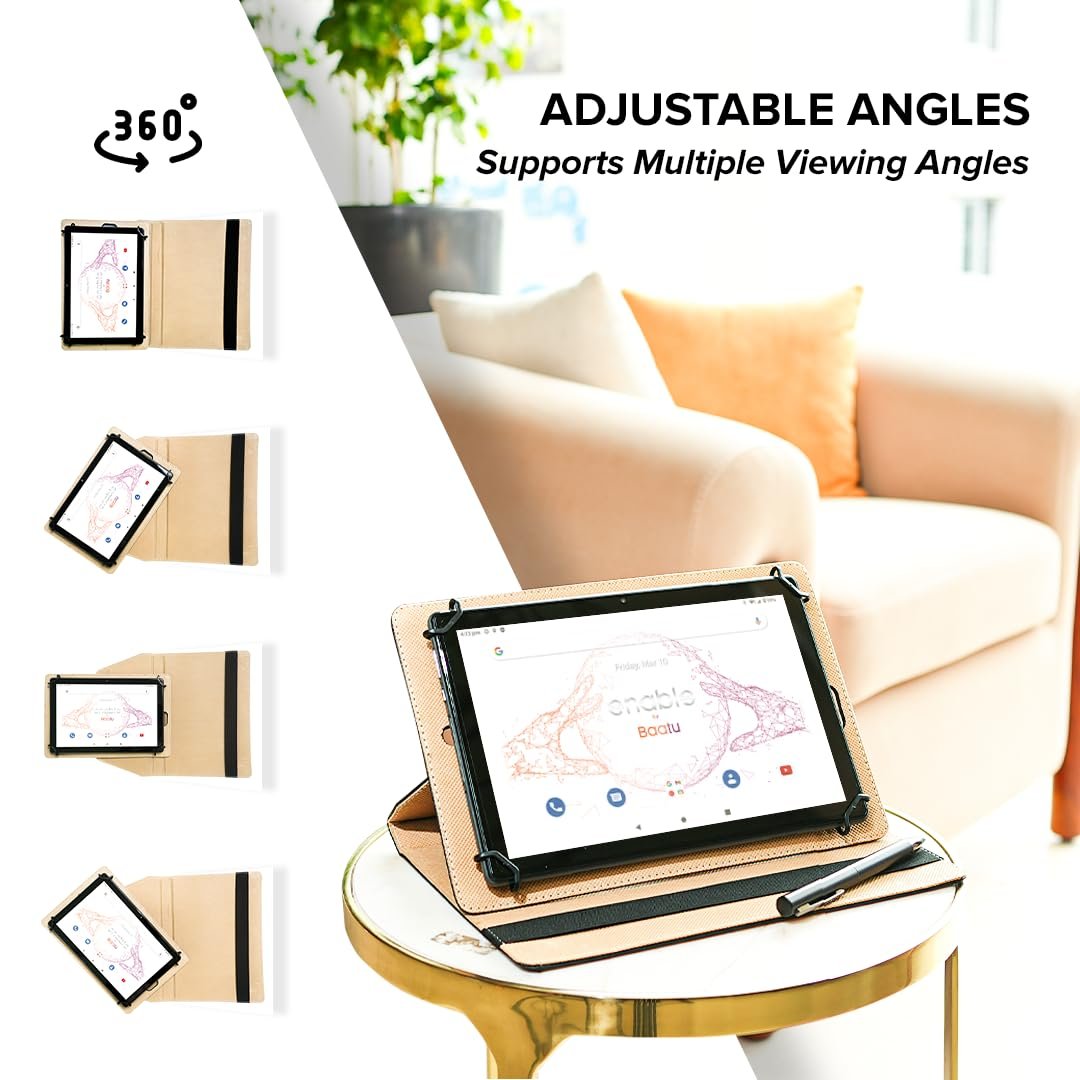 - Flip Cover – Protect your Baatu Enable Tab with this stylish Black flip cover. Crafted from premium artificial leather, it offers full-body scratch and bump protection. Featuring a smart stand for versatile viewing and precise cutouts for all ports, it’s the perfect blend of elegance and functionality for your tablet.