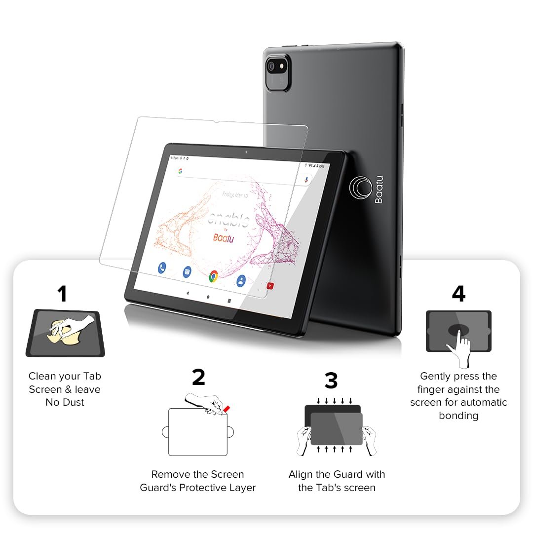 - Screen Guard – Protect your Baatu Enable Tab with this ultra-clear screen guard. It offers superior scratch and scuff resistance, preserving your display’s clarity and touch responsiveness. Designed for easy, bubble-free application, it’s the invisible shield your tablet needs for lasting protection.