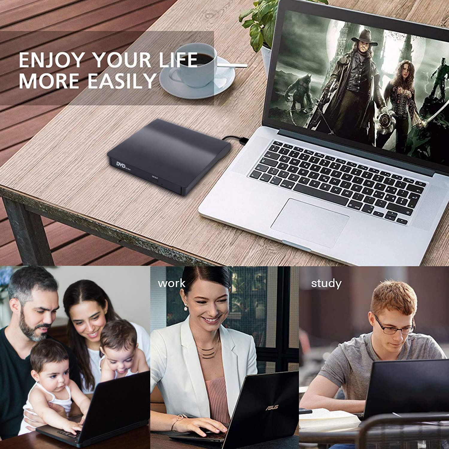 • Usb Dvd Drive – DVD drive external usb, no need for external driver and power supply. Just plug the usb cd drive in the USB port and start to enjoy yourself