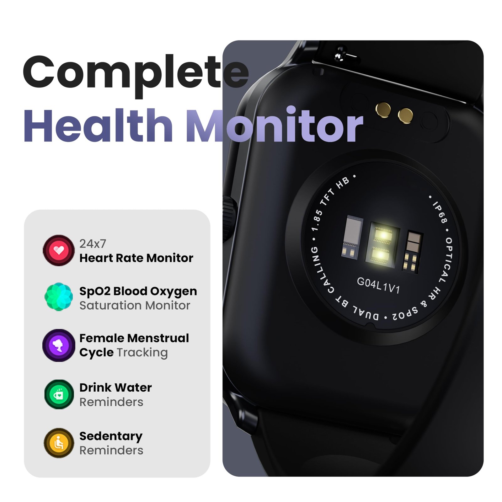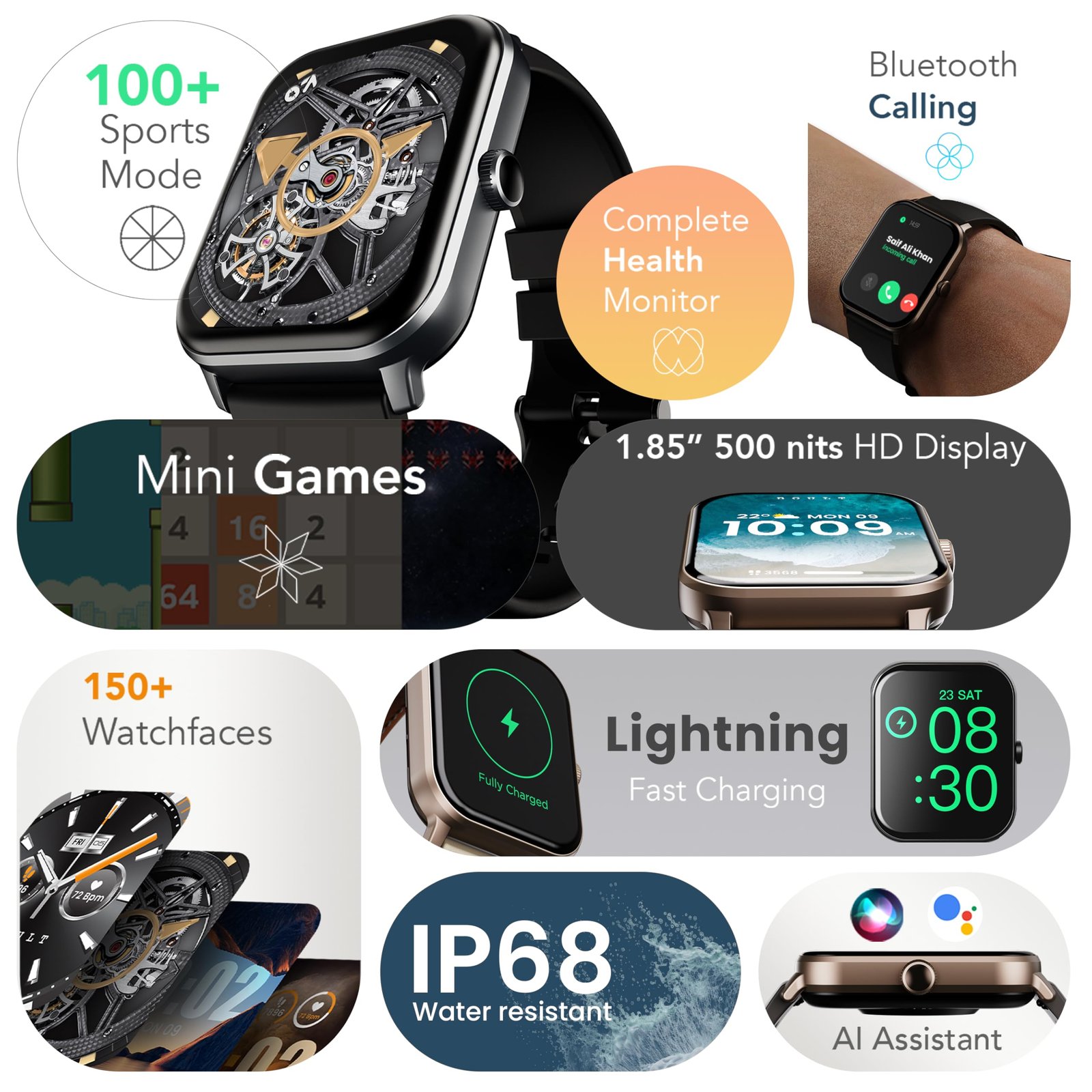GOBOULT Drift+ Smart Watch 1.85”HD Screen, Bluetooth Calling, IP68, 500 Nits Brightness,150+ Watchfaces, AI Voice Assistant, SpO2 Monitoring, 100+ Sports Mode Smartwatch (Jet Black)