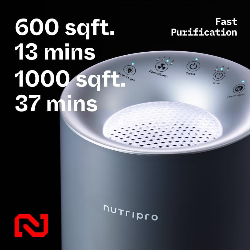 Nutripro Air Purifier For Home & Office 600 sq.ft, H13 HEPA, Activated Carbon, Removes 99.99% Pollutants & Micro Allergens – (Grey)
