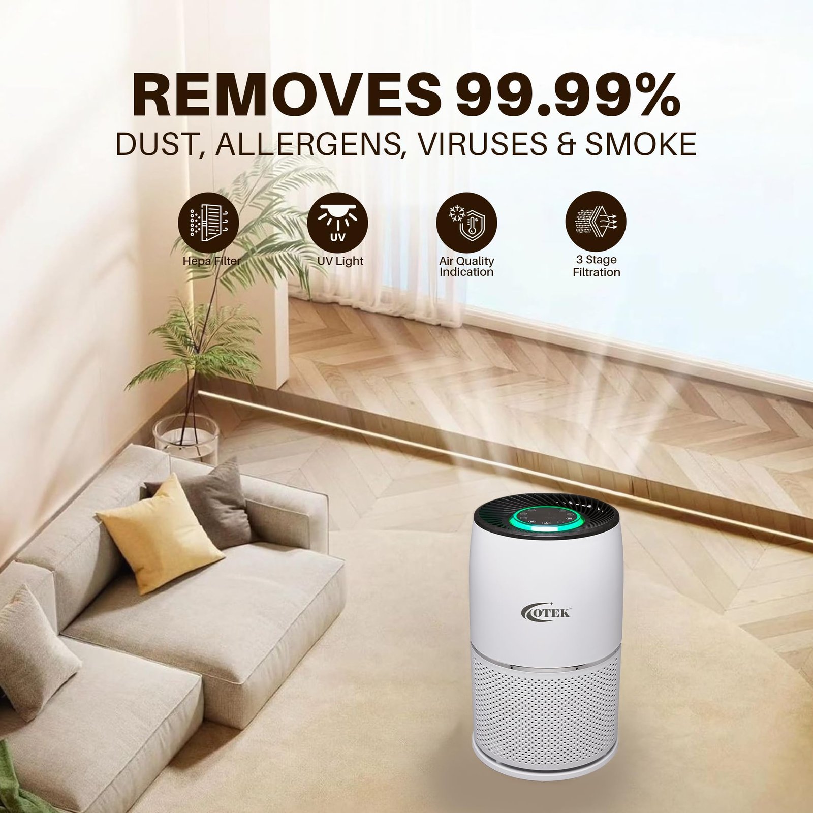 OTEK 330A Smart Air Purifier for Home & Office | HEPA H13 & Activated Carbon Filter | UV-C Sterilization | Real-Time AQI Display | Removes 99.9% Dust, Smoke & Allergens | 280 sq.ft