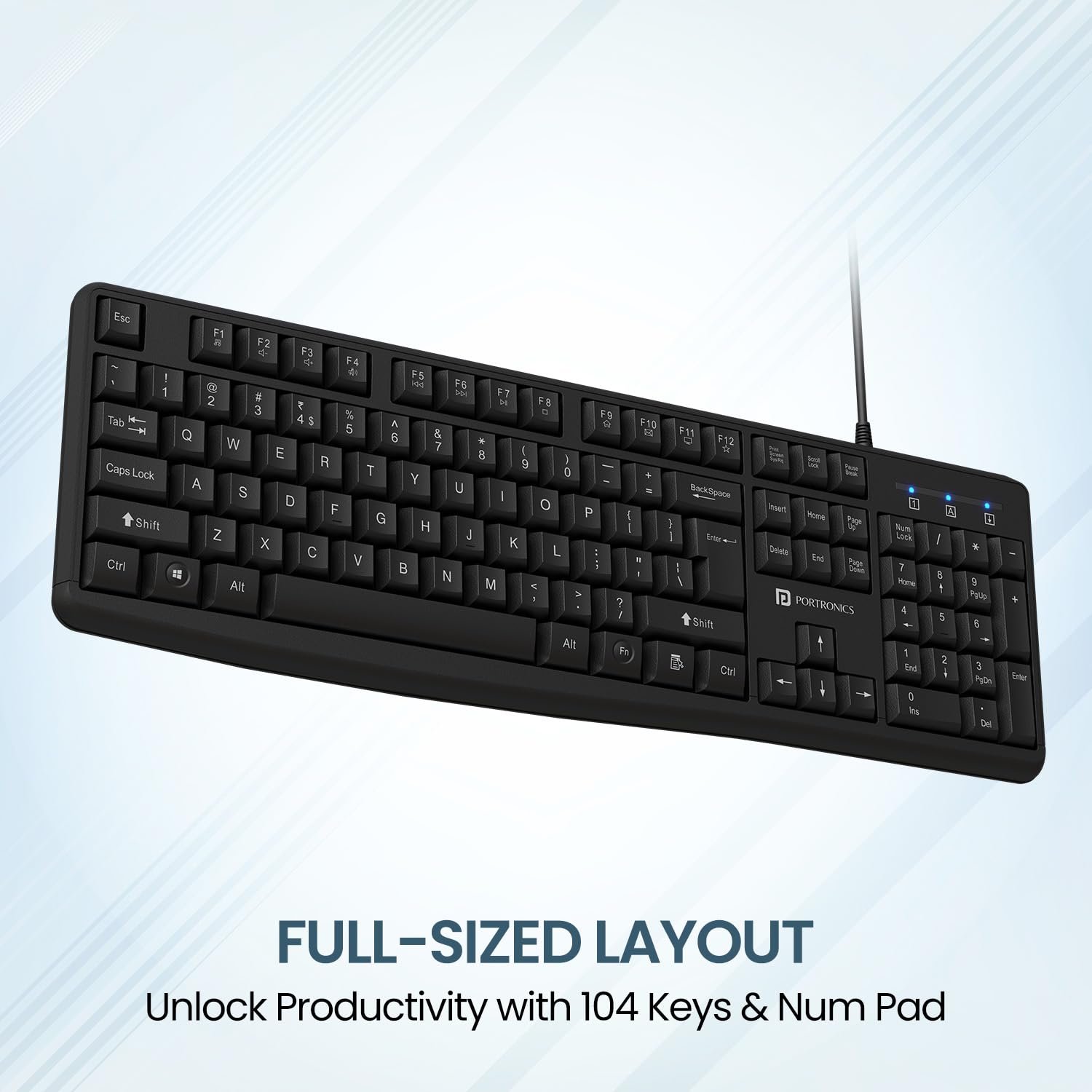 • Full-Size Wired Keyboard with Num Pad – The Portronics Ki-Pad 4 is a full-size wired keyboard featuring 104 keys and a dedicated numeric pad, perfect for office, home, and study use.