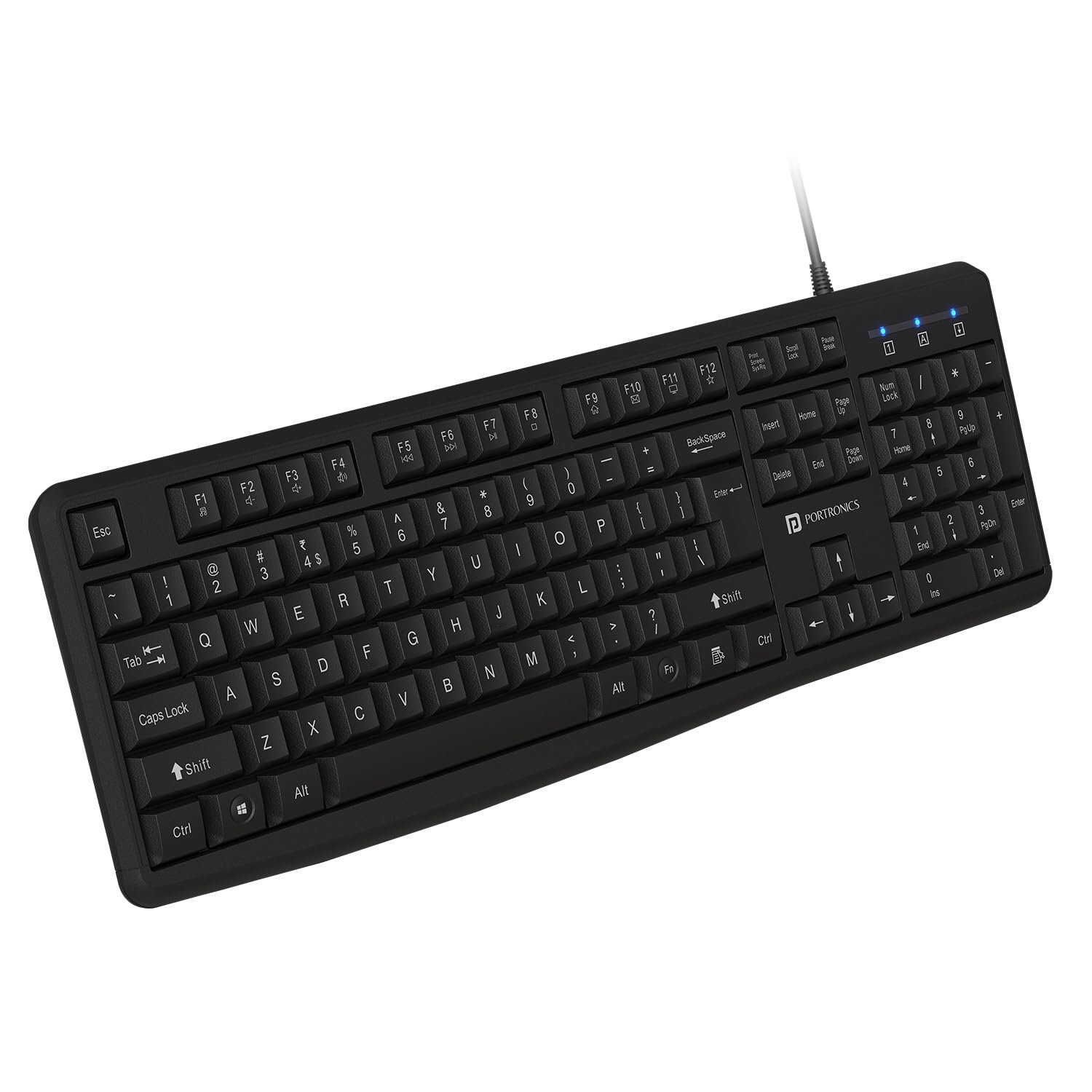 Details: Portronics Ki-Pad 4 USB Wired Keyboard with Fn Multimedia Hotkeys, Full-Size Layout with Num Pad, Ergonomic Design, 1.5m USB Cable, for Laptop, PC, Mac
