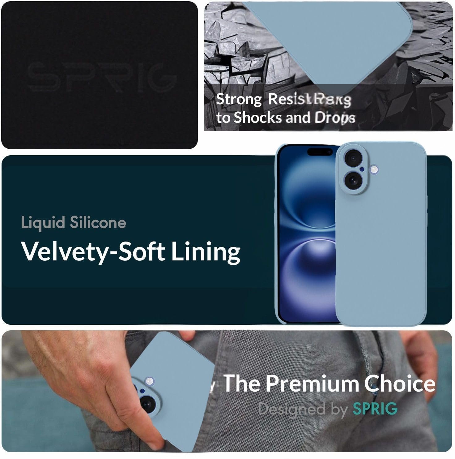 SPRIG Compatible with iPhone 17 Premium FlexTone Back Cover Drop Tested Shock Proof Mobile Case for Men, Women, Boys and Girls with Camera Protection (Blue)