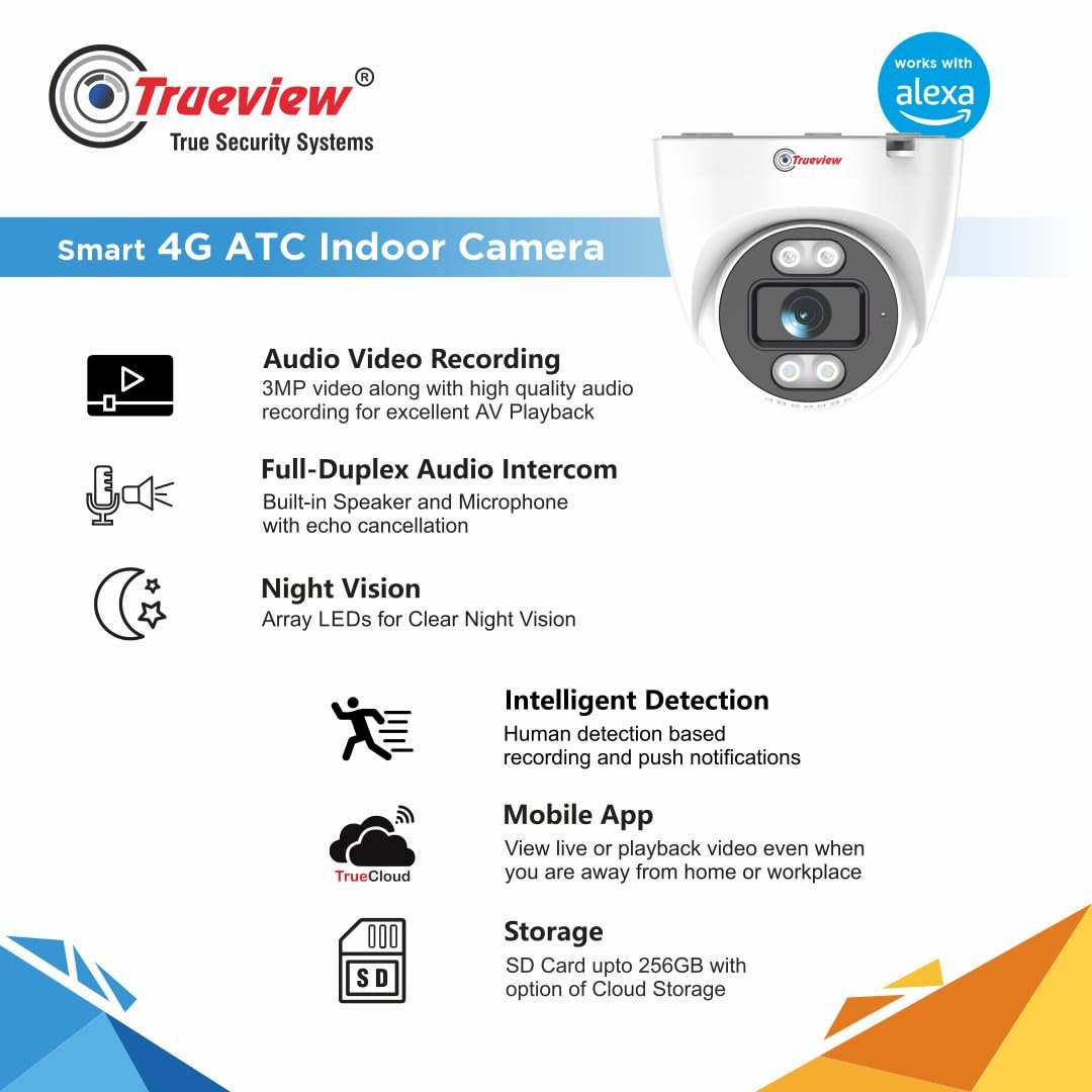 Trueview Smart Security Camera 4G 3mp CCTV Dome Camera for Home | Shop | Office | Farm | Construction Site | Sim Based Camera (4G Sim Based 3MP 1296p HD with 4 IR LED)
