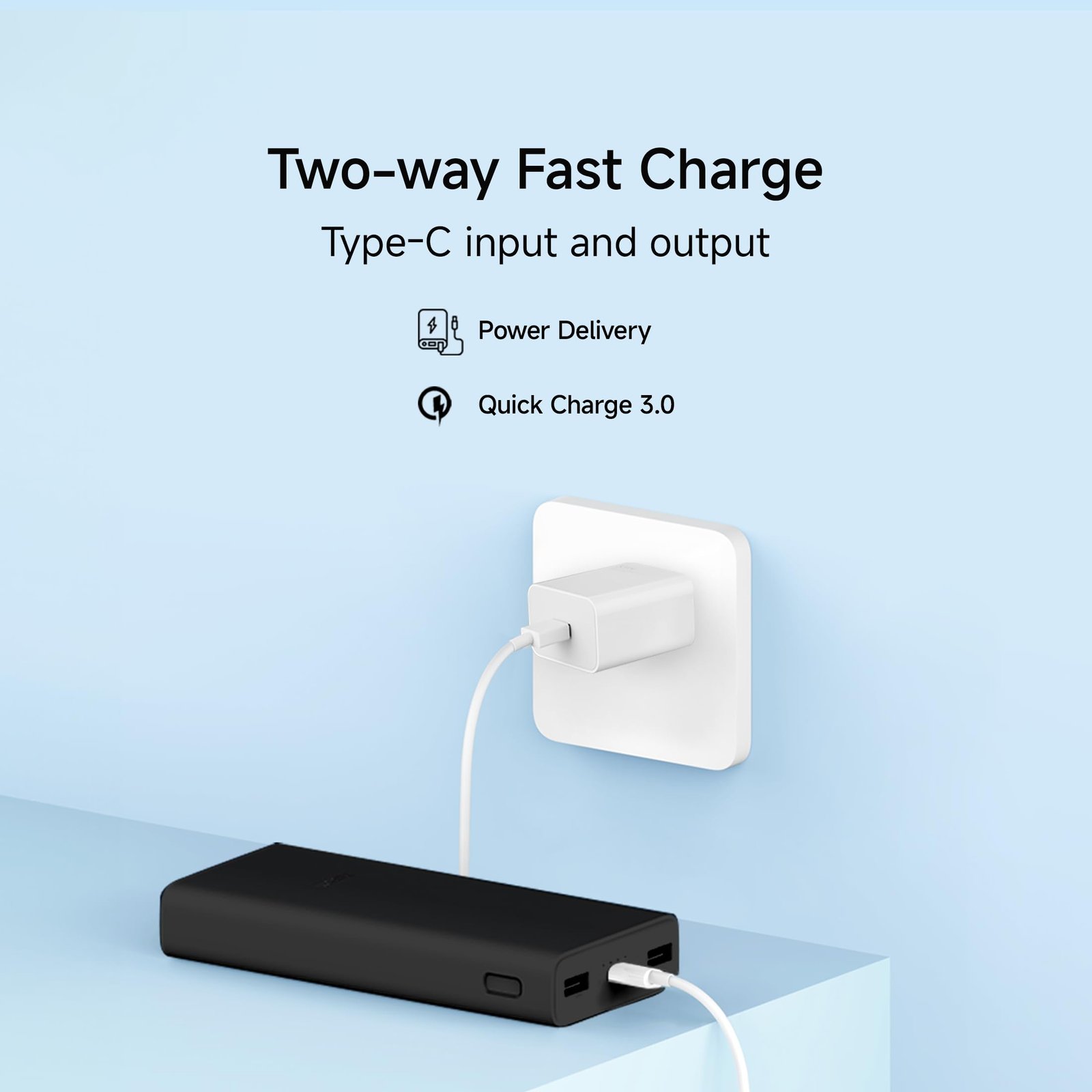 - Triple Port Output – Equipped with 2 USB-A and 1 USB-C output ports to charge three devices simultaneously, boosting convenience and productivity.