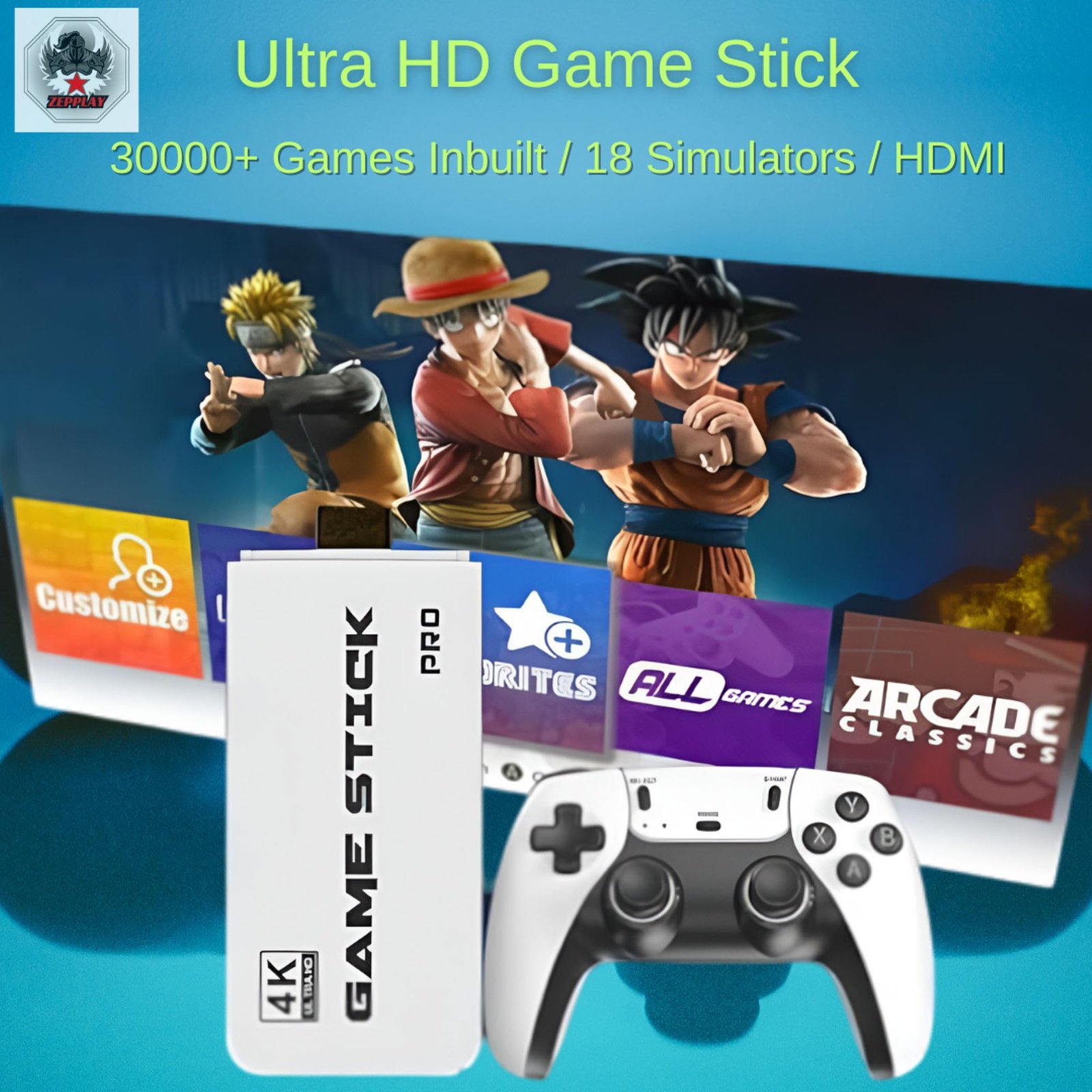 - Plug & Play 3D 4K Ultra HD Gaming – Simply connect the Zepplay HDMI stick to your TV and enjoy sharp visuals with 3D support and smooth 4K Ultra HD graphics. No setup or downloads required.